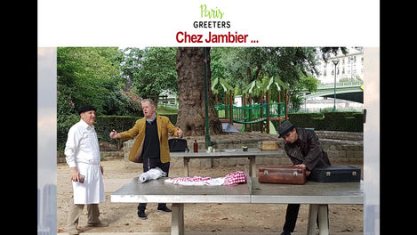 La balade a commencé Rue Poliveau près du jardin du luxembourg, Christophe Coline, Bruno Fileni et Laurent Lenormand ont joué la scène chez Jambier (Bruno Fileni-De Funès) 3 fois Quai Saint Bernard, car les 3 groupes avaient été réduits à une vingtaine de personnes.